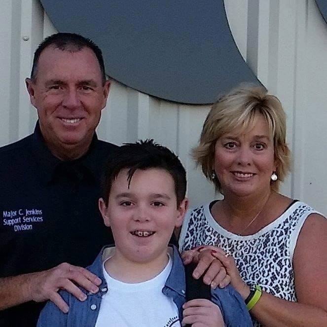 Bottom photo: Major Coy Jenkins, Marti Jenkins and their son, Chet.